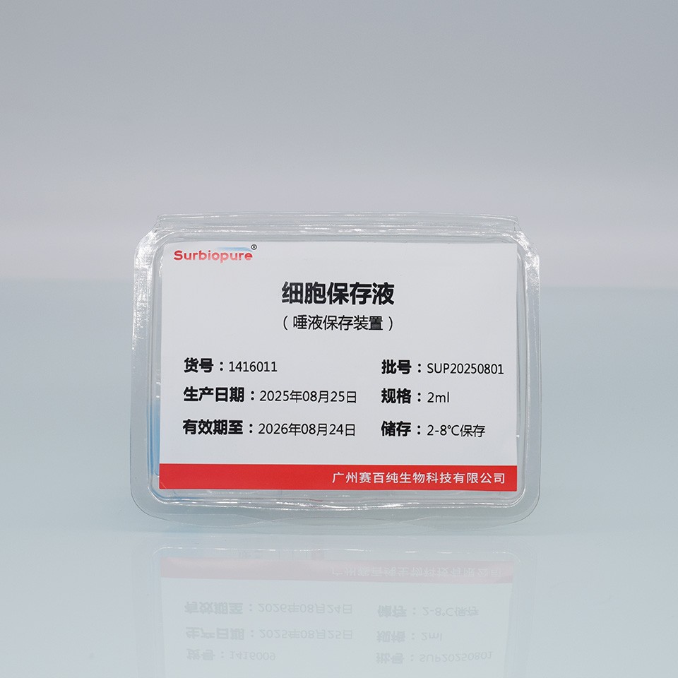 本產(chǎn)品通過唾液采集器和唾液收集管對唾液樣本進(jìn)行采集、儲存;采集后,將細(xì)胞保存液全部倒入唾液收集管中,上下?lián)u動采集管,充分與細(xì)胞保存液混合,能夠保證唾液樣本內(nèi)DNA的完整性,并且可以在室溫(15℃~25℃)條件下的長期保存6個月。